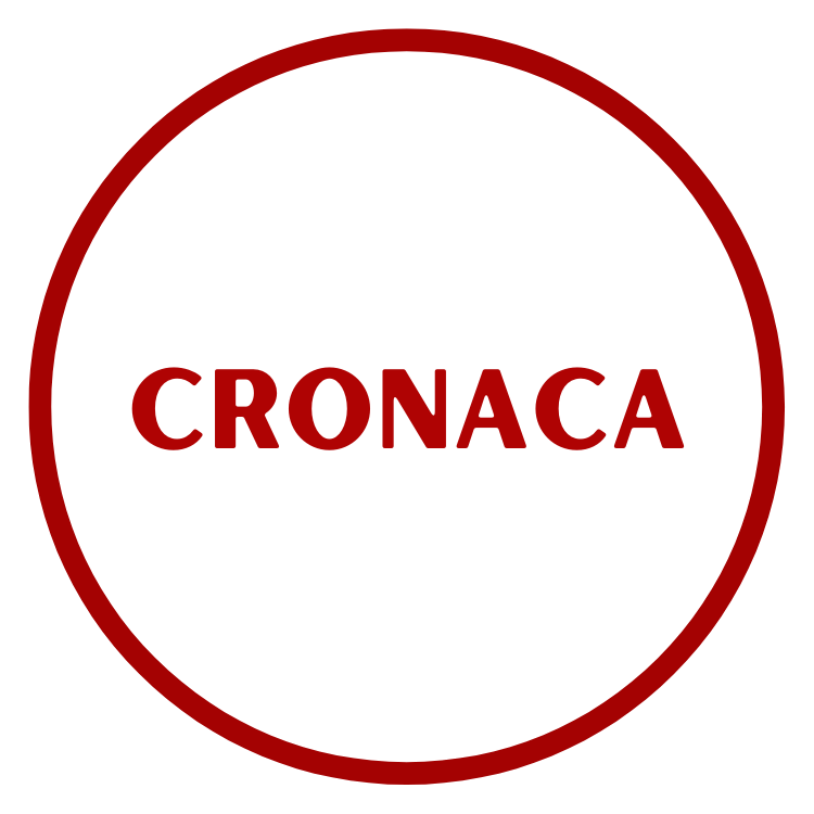 Cerchio nero con bordo rosso e la parola "CRONACA" scritta al centro in rosso.